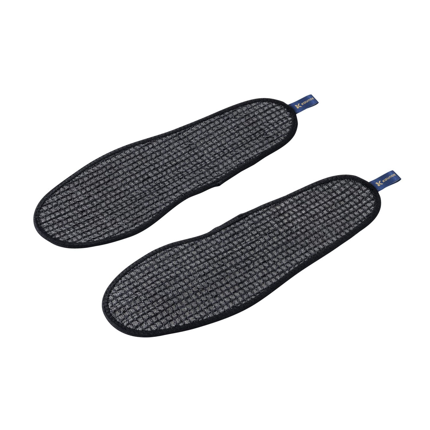表面に配置された格子状ネット素材が鈍感な足裏を刺激し、足指と足裏の感覚・筋肉を呼び起こします。また「横糸のねじり」により適度な滑り止め効果が生まれ「地面を掴む」ことができ、地に足が着いた状態で力の発揮を促し、身体の安定感を生み出す。またフラットな形状と3mmのEVA樹脂により、日々変化する足の形状や、足の形状に合わないシューズの足底にも馴染んで対応する設計です。消臭ネームを使用しているため気になる足の臭いを軽減します。